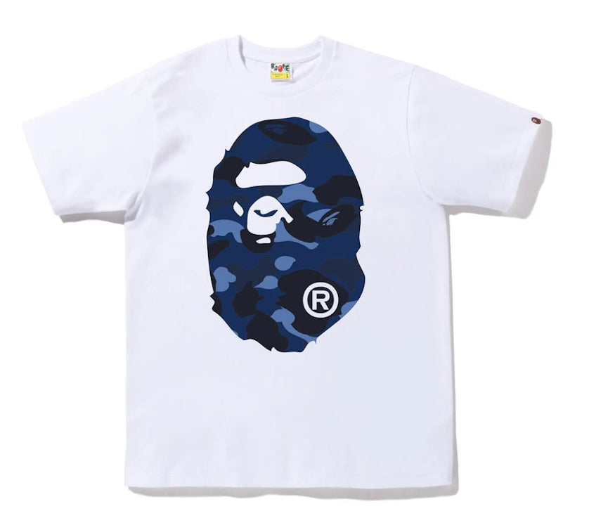 Bape White Blue Color Big Ape Head Tee