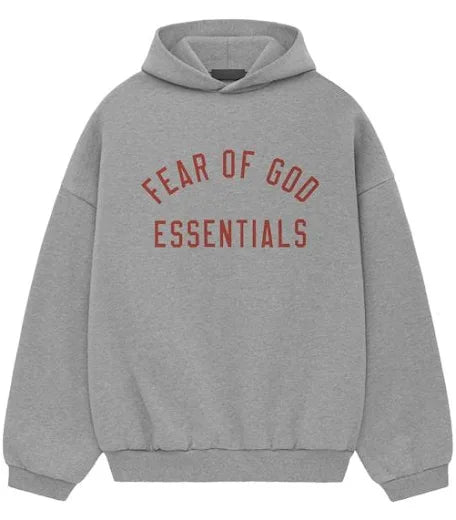 Essentials Dark Oatmeal With Red Font Fleece Hoodie