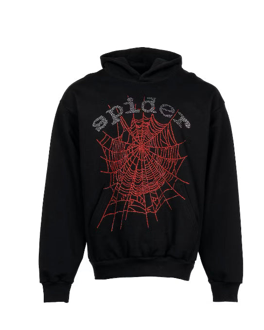 Sp5der Black OG Rhinestone Logo Hoodie